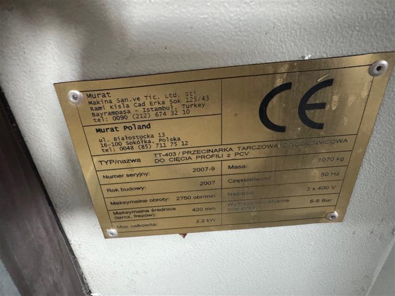 | 5 | Przecinarka taczowa dwugłowicowa Murat Typ-403, prod. 2007 | 1 | 59 940,00 zł 48731,71 zł netto + 23% VAT | 44 955,00 zł* | 2 248,00 zł |