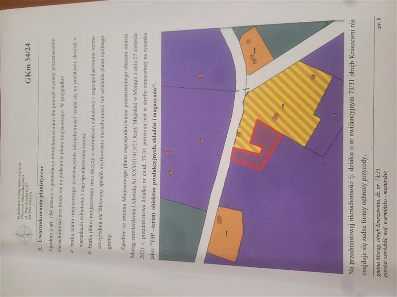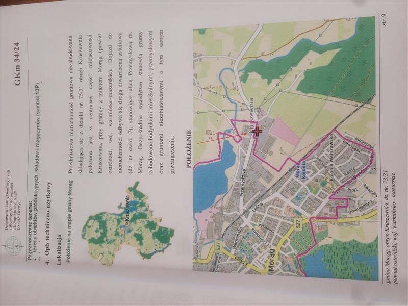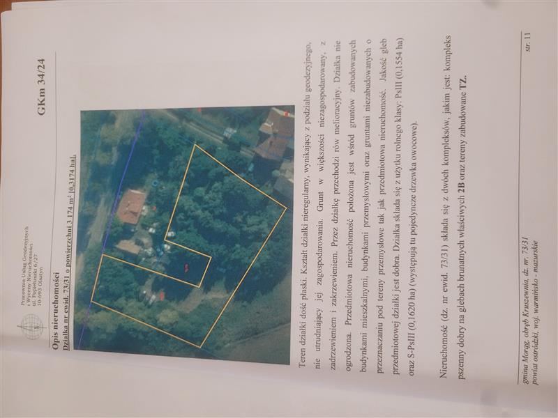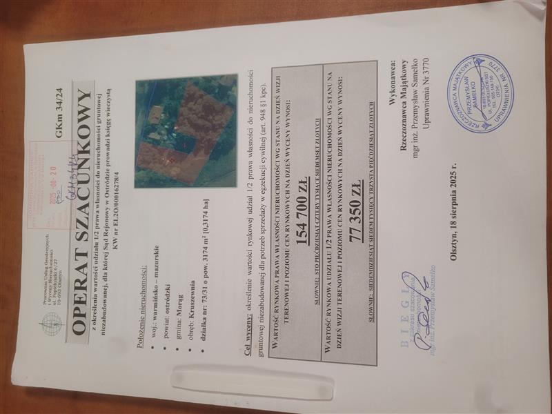 1/2 niewydzielonej części nieruchomości stanowiącej niezabudowaną działkę gruntu o nr ewidencyjnym 73/31 o powierzchni 3174 m kw - 0,3174 ha, położoną 14-300 Kruszewnia. Wpłacając wadium w tytule wpłaty należy wpisać "wadium GKM 34/24"