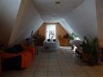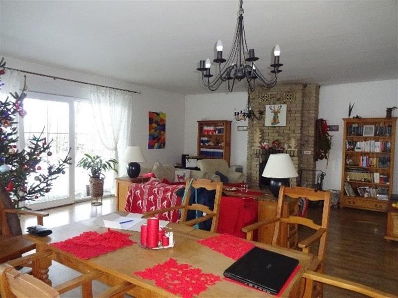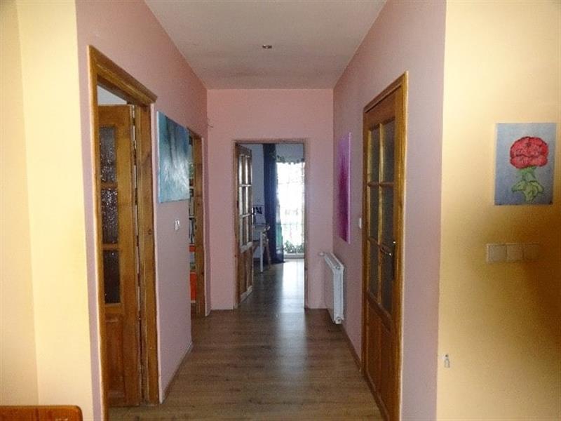 Budynek mieszkalny składa się z jednej kondygnacji, poddasza użytkowego i jest niepodpiwniczony. Wyposażony w następujące instalacje techniczne: wodociągową (z.w.u. i c.w.u. z zasobnika ogrzewanego piecem c.o.), kanalizacyjną, gazową (wyłącznie do ogrzewania budynku), centralne ogrzewanie zasilane piecem gazowym jednofunkcyjnym, rozprowadzone za pomocą ogrzewania podłogowego na parterze i grzejników płytowych na poddaszu. Alternatywnie budynek ogrzewany kominkiem z płaszczem wodnym, zlokalizowanym w salonie, który jest częścią centralnego ogrzewania. Na parterze znajduje się pokój dzienny, kuchnia, sień, w.c. i kotłownia, korytarz i klatka schodowa, garaż, pomieszczenie gospodarcze. Na poddaszu 3 pokoje, korytarz, łazienka, garderoba.