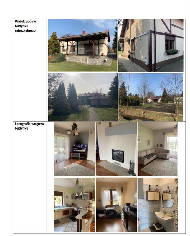 Zabudowę nieruchomości stanowi budynek mieszkalny jednorodzinny o pow. zabudowy 117 m2 oraz budynek gospodarczy (niemieszkalny) o pow. zabudowy 80 m2. Kształt działek nie stwarza zasadniczych ograniczeń w zakresie możliwości pełnego zagospodarowania. Od strony północno-zachodniej budynku mieszkalnego posadowiony jest budynek gospodarczy - garaż. Teren działki wokół budynków jest zagospodarowany na potrzeby ogrodu przydomowego. Brama wjazdowa z furtką od strony północnej. Na terenie nieruchomości w części rekreacyjnej znajdują się także obiekty małej architektury, elementy architektury ogrodowej m.in. huśtawka/bujak ogrodowy o konstrukcji drewnianej.
