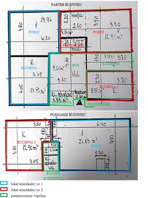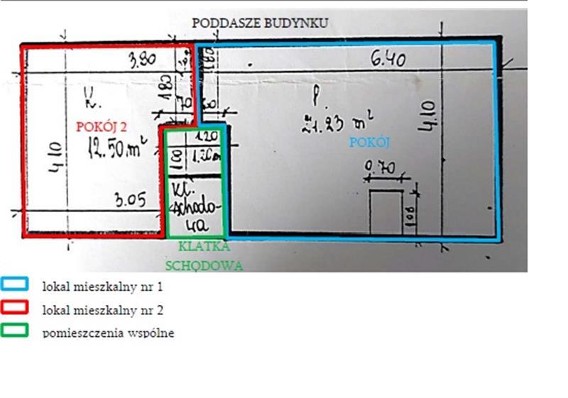 w wysokości 1/2 części. Lokal mieści się w budynku dwulokalowym, w stanie aktualnym składa się z dwóch pokoi, kuchni, łazienki, przedpokoju i korytarza. Łączna powierzchnia użytkowa lokalu na dzień oględzin wynosi 41,70 m2 (53,03 m2 według wpisów w księdze wieczystej).