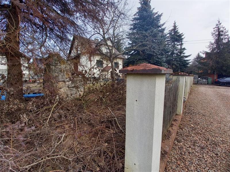 Teren działki ogrodzony ogrodzeniem w zróżnicowanym stanie technicznym