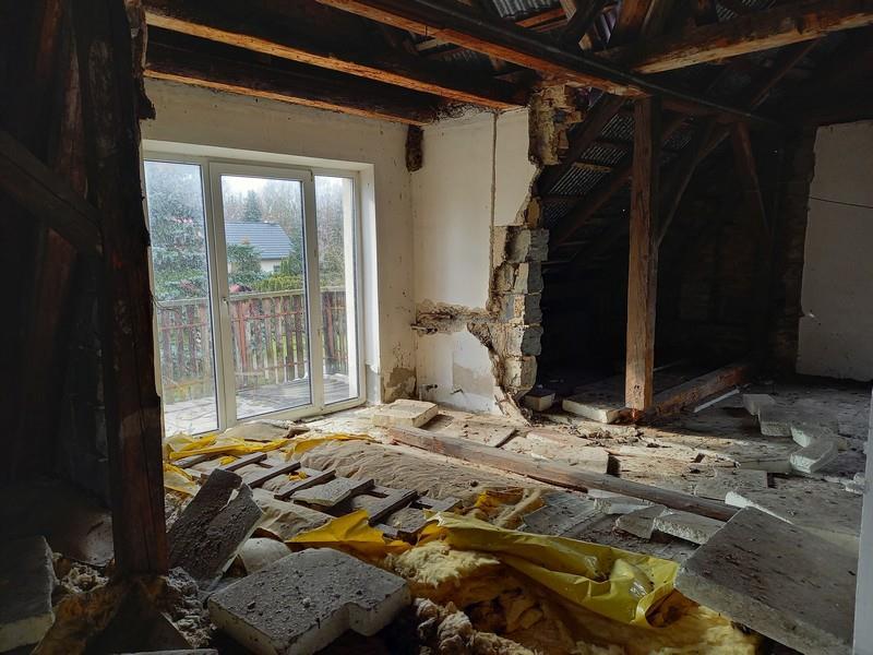 Na poziomie piętra znajdują się następujące pomieszczenia: korytarz, kuchnia, dwa pokoje, wiatrołap, łazienka, łazienka/pomieszczenie (w stanie nie wykończonym). Razem powierzchnia użytkowa piętra wynosi: 68,59 m2.