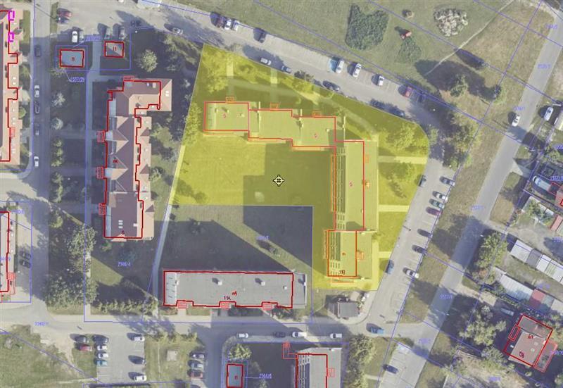 Budynek, w którym znajduje się przedmiotowy lokal, usytuowany na działce 2346/5 o powierzchni 0,4204 ha. Działka w kształcie wieloboku, otoczona z trzech stron terenami działki oznaczonej numerem 2346/11. Działka oznaczona numerem 2346/5, jest zabudowana w części budynkiem mieszkalnym wielorodzinnym. Teren przy budynku zagospodarowany – wykonane chodniki, nasadzenia roślinne, parkingi. Dojazd do budynku drogami osiedlowymi możliwy od wschodu i północy drogami wewnętrznymi. W bezpośrednim sąsiedztwie od strony wschodniej i północnej elewacji znajdują się parkingi. Budynek mieszkalny, wielorodzinny, kilkubryłowy, tworzący odwróconą literę„L”. Budynek o zróżnicowanej liczbie kondygnacji (od 3 do 5 kondygnacji, tj. 2–, 3– i 4–piętrowy), podpiwniczony, sześcioklatkowy, wybudowany w 1989 roku, w technologii uprzemysłowionej (tzw. wielkopłytowej). Stropodach płaski, kryty papą. Elewacja ocieplona, otynkowana. Budynek o łącznej powierzchni zabudowy 941 m2.