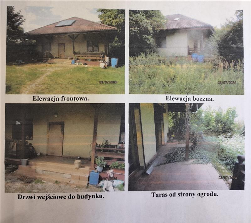 Zabudowę nieruchomości stanowi budynek mieszkalny, parterowy z poddaszem mieszkalnym niepodpiwniczony o pow. użytkowej 144,60m2, dach kopertowy kryty blacho-dachówką, wybudowany w 2006r.; budynek mieszkalny parterowy z poddaszem podpiwniczony o pow. użytkowej 42,25m2; budynek gospodarczy o konstrukcji murowanej o pow. zabudowy 14m2