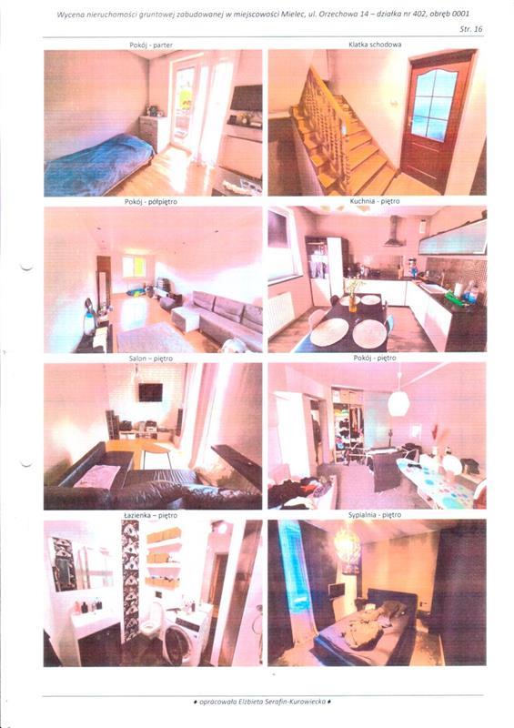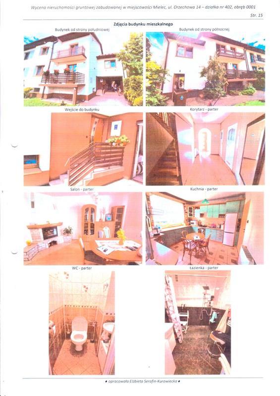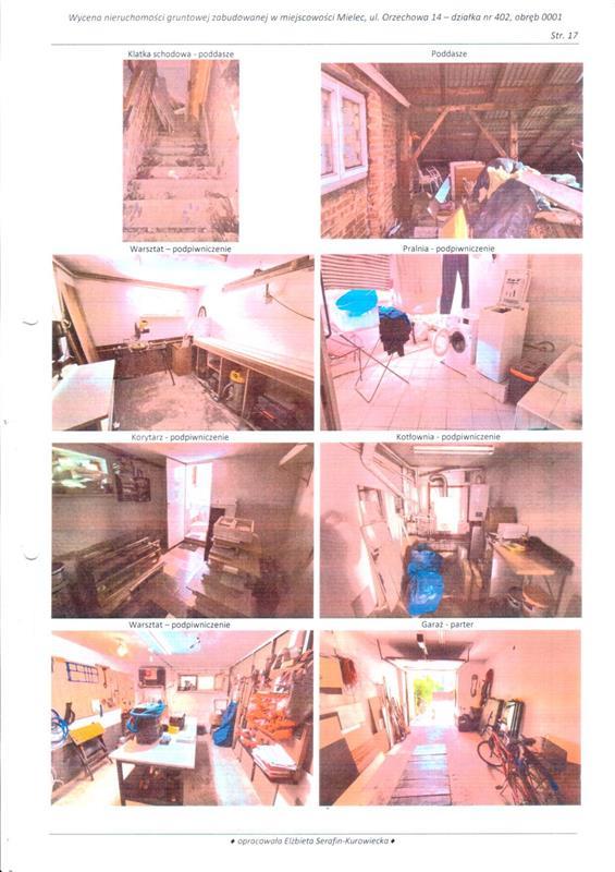 Przedmiotem licytacji jest udział w wysokości 1/2 w prawie własności nieruchomości gruntowej zabudowanej, składającej się z działki o numerze ewidencyjnym 402 o powierzchni 0,0364 ha zabudowanej budynkiem mieszkalnym jednorodzinnym w zabudowie szeregowej dwukondygnacyjny z poddaszem nieużytkowym i częściowym podpiwniczeniem, z garażem w bryle budynku o powierzchni zabudowy 134,00 m2, oznaczonym nr 14, położonej przy ul. Orzechowej na terenie obrębu 0001 Stare Miasto, w Mielcu, w powiecie mieleckim, w województwie podkarpackim. Nieruchomość posiada urządzoną księgę wieczystą KW Nr TB1M/00026099/3. W budynku na parterze wydzielono: wiatrołap, korytarz, klatkę schodową, kuchnię, spiżarkę przy kuchni, salon, łazienkę, wc, pokój. Na półpiętrze wydzielono klatkę schodową i pokój, na piętrze wydzielono korytarz, klatkę schodową, dwa pokoje, kuchnię, łazienkę, salon, a w podpiwniczeniu: warsztat, pralnię, korytarz z kotłownią, pomieszczenie piwniczne, korytarz, garaż. Poddasze bez wykończenia.