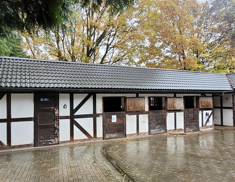 Nieruchomości opisane w księgach wieczystych nr GL1W/00036078/9 i nr GL1W/00010178/2, które obejmują po dwie działki gruntowe (GL1W/00036078/9 - działki nr 145/79, 230/75 i nr GL1W/00010178/2 - działki 146/79 i 231/75), sąsiadujące ze sobą i stanowiące gospodarczą całość - teren nachylony w kierunku południowym, o nieregularnym kształcie, zachodnio- północną granicą sąsiadujący z ul. Leśną. Na działce nr 145/79 usytuowany jest kompleks budynków gospodarczo- usługowych, na pozostałych działkach usytuowany jest budynek biegalni dla koni, a granica pomiędzy obu nieruchomościami przechodzi przez środek budynku. Dojazd od głównej drogi - ul. Wodzisławskiej, z dwóch stron drogą asfaltową - ul. Leśną oraz nieutwardzoną - boczną od ul. Leśnej. Teren wokół zabudowań jest zagospodarowany - wykonano utwardzone drogi dojazdowe place gospodarcze, teren częściowo ogrodzony. Uzbrojenie terenu: wodociąg, sieć elektryczna, kanalizacyjna lokalna. Na nieruchomościach znajdują się elementy małej architektury w postaci: drewnianego budynku kuźni, ptaszarni, wybiegu dla koni (karuzeli), parkur wraz z pomieszczeniem dla sędziów, lążownia, pomost stalowy.