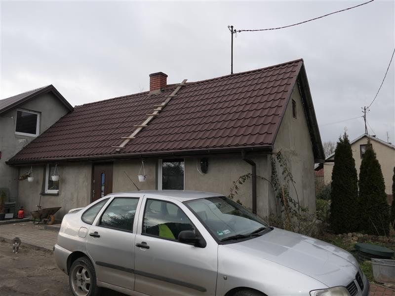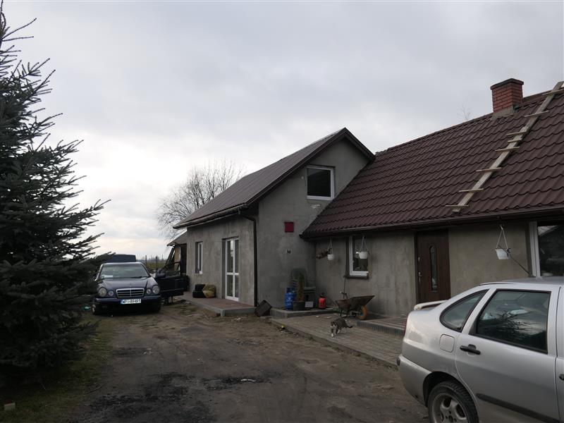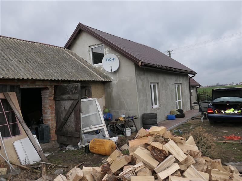 Budynek mieszkalny - składający się z 2 brył zrealizowanych w różnych latach. Obiekt parterowy murowany z poddaszem gospodarczym, strop drewniany, dach dwuspadowy pokryty blachodachówką powlekaną, elewacje w części ocieplone styropianem, w części tynkowane. Powierzchnia zabudowy 92 m2 - 3 pokoje, przedpokój, łazienka, kuchnia. Stolarka okienna przeważnie PCV, jedno okno drewniane. Instalacje: energii elektrycznej, wodno- kanalizacyjnej, centralnego ogrzewania (piec na paliwo stałe „Galmet”).