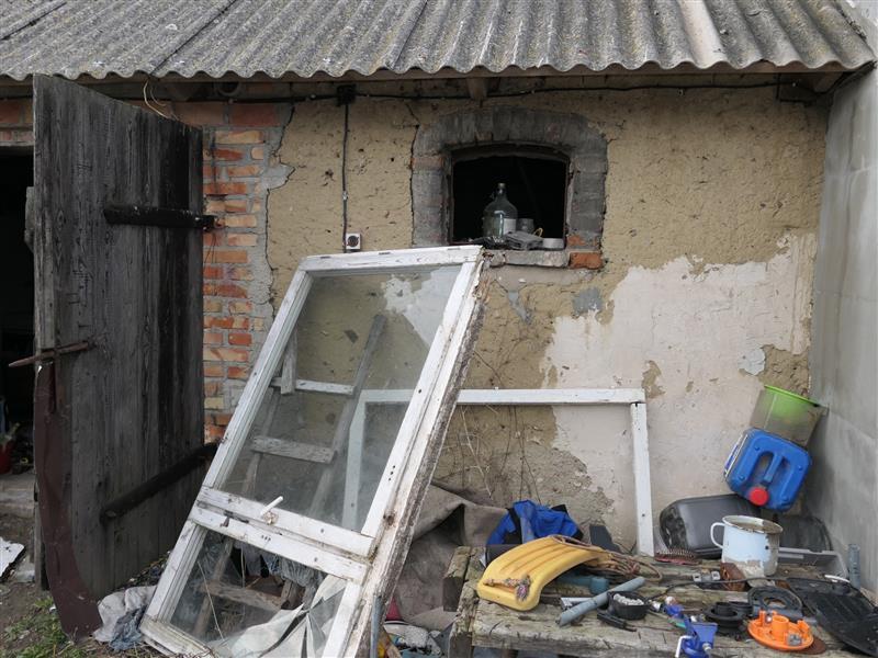 Budynek gospodarczy - parterowy, wykonany w technologii mieszanej (glina, pustaki, cegły, kamień), dach dwuspadowy pokryty eternitem falistym. Powierzchnia zabudowy 42 m2. Obiekt do remontu.