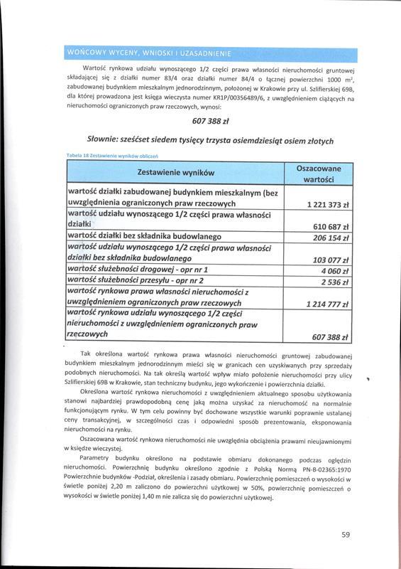 Cała nieruchomość oszacowana została na kwotę 1 214 777,00 zł, zaś udział dłużnika w wys. 1/2 podlegający sprzedaży na kwotę 607 388,00 zł.