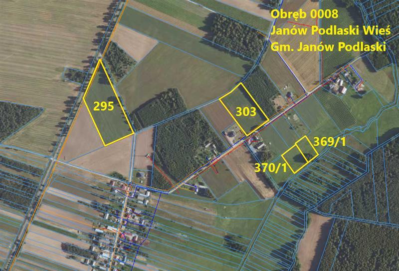 udział 1/2 w działce ewidencyjnej nr 295 o pow. 2,0488ha (pastwiska trwałe PsVI-0,0371ha; grunty orne RIVb-0,3409ha; RV-1,6708ha) położony w msc. Janów Podlaski Wieś w gminie Janów Podlaski i posiadający założoną księgę wieczystą nr LU1B/00011959/8.