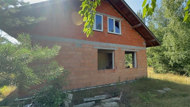 Nieruchomość składająca się z dwóch działek gruntu o numerach ewidencyjnych 15/5 i 15/6 jest zlokalizowana przy drodze utwardzonej publicznej (droga dojazdowa) o małym natężeniu ruchu kołowego, łączącej się z drogą powiatową, na obszarze zurbanizowanym i nadal się urbanizującym. W drodze jest oświetlenie. Nieruchomość ma kształt prostokąta, teren płaski. Nie jest ogrodzona. W granicach nieruchomości posadowiony jest budynek mieszkalny w stanie niedokończonym. Budynek posadowiony został na działce 15/6, a na działce 15/5 zamontowano przydomową o czyszczalnię ścieków. Teren działki wokół budynku porasta trawa oraz drzewostan sosny i brzozy. Uzbrojenie: wodociąg, energia elektryczna, kanalizacja sanitarna – przydomowa o czyszczalnia ścieków. Budynek mieszkalny parterowy, bez podpiwniczenia, z poddaszem nieużytkowym, z garażem w bryle budynku, wybudowany na podstawie decyzji - pozwolenia na budowę wydanego przez Starostę Kolskiego nr 117.2017 (nr sprawy: AB 6740.110.2017) z dnia 22.03.2017r. Budynek wykonany z pustaka ceramicznego, nieotynkowany. Ściany wewnętrzne wykonane z pustaka, wygipsowane. Dach dwuspadowy konstrukcji drewnianej pokryty gontem z papy asfaltowej. W budynku brak okien i drzwi. Posadzki wyłożone keramzytem jako ocieplenie posadzki. Doprowadzone są przyłącza oraz częściowo instalacje: elektryczna i wodno – kanalizacyjna. Powierzchnie budynku wynoszą: zabudowy 180 m2, użytkowa mieszkalna 123,28 m2, garaż z wejściem z zewnątrz 22,20 m2 (łącznie powierzchnia 145,48m2).
