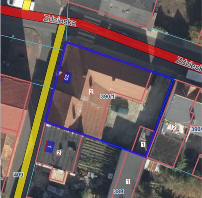 Budynek mieszkalno–użytkowy. Przedmiotowy budynek wybudowany został w 1 ćw. XX wieku. Budynek jest obiektem jednokondygnacyjnym z poddaszem mieszkalnym oraz częściowo stanowiącym typowy strych nieużytkowy. W budynku na parterze znajduje się niewyodrębniony lokal użytkowy oraz dwa mieszkania, a na poddaszu są trzy mieszkania. Budynek wybudowano w technologii tradycyjnej murowanej według sprawdzonych technologii oraz trwałych materiałów budowlanych. Lokal użytkowy, mieszkanie na parterze oraz dwa mieszkania na poddaszu są nieużytkowane.