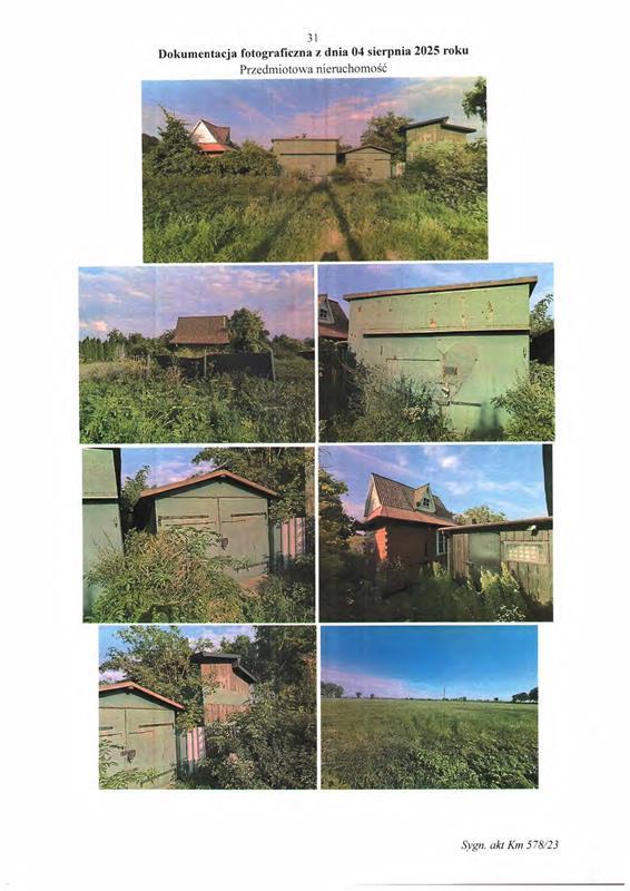 4. Budynek gołębnika - budynek konstrukcji drewnianej. Dach konstrukcji drewnianej, pokryty papą. Budynek o jednej kondygnacji nadziemnej i powierzchni zabudowy około 22 m2. Według informacji uzyskanych podczas oględzin to budynek został wybudowany sprzed 20 lat. Budynek nie jest naniesiony na mapę zasadniczą i nie można jednoznacznie stwierdzić jego położenia, czy mieści się w granicach przedmiotowej nieruchomości.