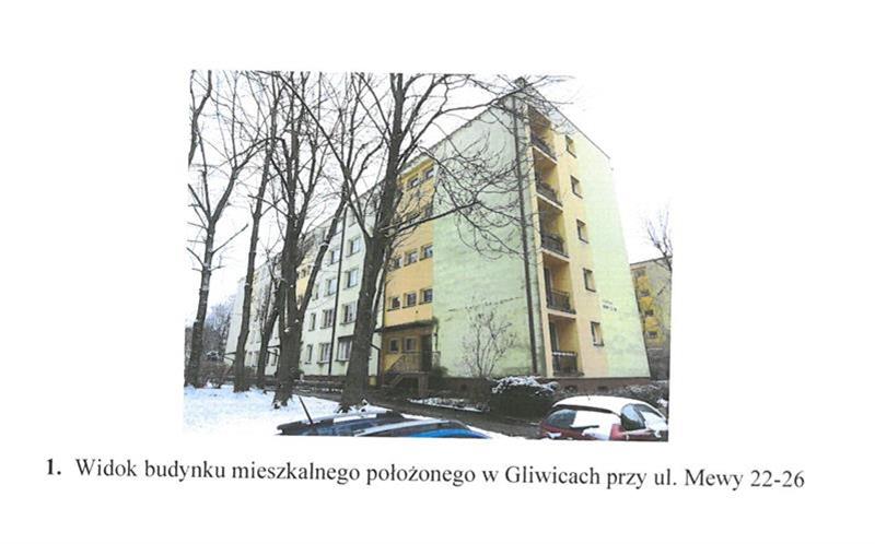 - spółdzielczego lokalu mieszkalnego położonego przy Mewy 26/11, 44-122 Gliwice, dla którego Sąd Rejonowy w Gliwicach VIII Wydział Ksiąg Wieczystych (adres: ul. Jana Siemieńskiego 10a, Gliwice, 44-100 Gliwice) prowadzi księgę wieczystą o numerze GL1G/00152756/1.