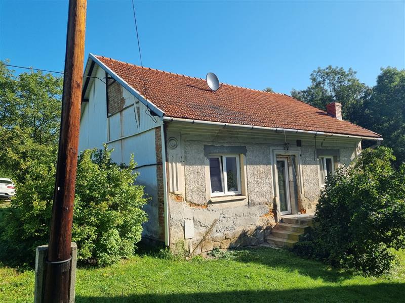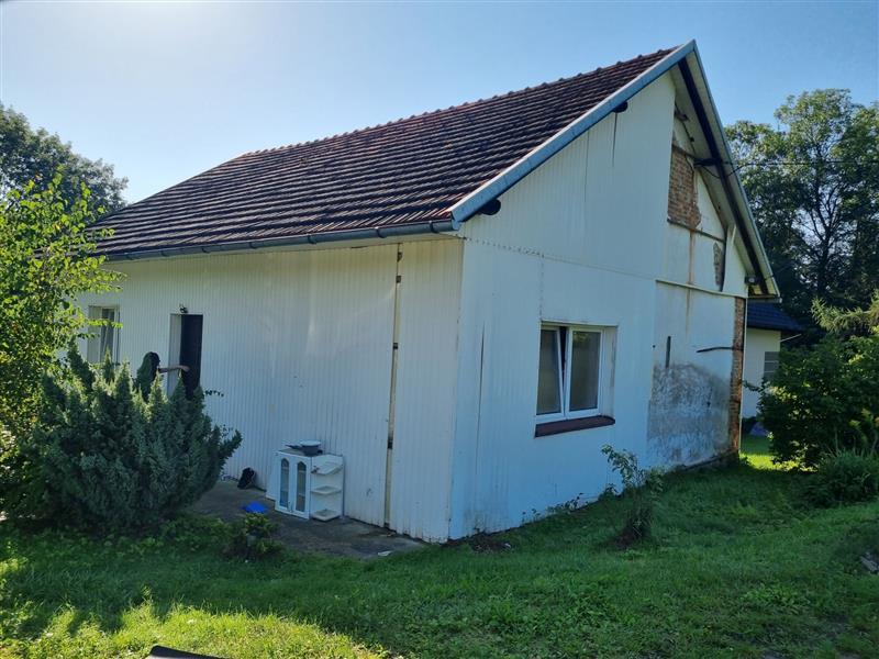 Udział 1/2 w nieruchomości gruntowej należącej do dłużnika Gibas Aneta, dla której Wydział Ksiąg Wieczystych Sądu Rejonowego w Wadowicach prowadzi księgę wieczystą, o nr KW KR1W/00048943/0, częściowo zabudowany budynkiem mieszkalnym jednorodzinnym, wolnostojącym, parterowym z poddaszem nieużytkowym, częściowo podpiwniczonym, o powierzchni użytkowej 70 m2, składającym się z przedsionka, kuchni, czterech pokoi oraz łazienki oraz blaszanym garażem posadowionym na fundamentach starego budynku gospodarczego. Nieruchomość jest nieogrodzona, w przeciętnym stanie technicznym, nadającym się do remontu, teren przy budynku słabo zagospodarowany, porośnięty trawą oraz krzewami i drzewami. Nieruchomość położona jest w miejscowości Izdebnik, zlokalizowana na działkach nr 670/1, 617/1, 617/2 o łącznej powierzchni 0,4641 ha, na terenach zieleni wysokiej.