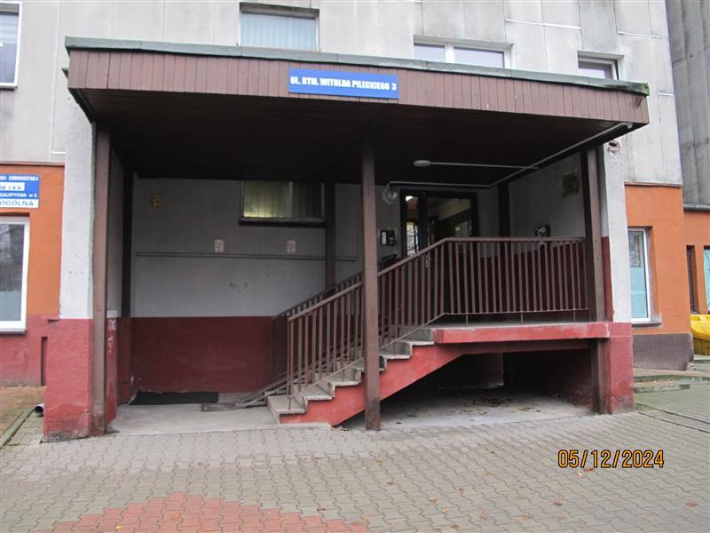 Lokal mieszkalny należy do zasobów Spółdzielni Mieszkaniowej "Wspólnota" w Będzinie. Powierzchnia użytkowa lokalu wraz z powierzchnią przynależną wg danych z księgi wieczystej lokalu wynosi 32,48 m2. Lokal składa się z jednego pokoju, kuchni, przedpokoju i łazienki z WC. Nieruchomość, na której usytuowany jest budynek zawierający wyceniany lokal ma księgę wieczystą o nr KA1B/00018036/3, urządzoną w Sądzie Rejonowym w Będzinie. Według wskazanej księgi nieruchomość składa się z prawa własności kilkunastu działek o łącznej powierzchni 10 148 m2. Przeważający sposób korzystania z działek to tereny mieszkaniowe, których zabudowę kubaturową stanowi szereg budynków wielomieszkaniowych, w tym budynek nr 3 zawierający wyceniany lokal. Dojazd do budynku, w którym znajduje się wyceniany lokal wiedzie przez osiedle asfaltową drogą, do ul. Pileckiego, aż po klatkę schodową, przy której znajduje się wystarczająca ilość miejsc parkingowych. Nieruchomość można oglądać w ciągu dwóch tygodni przed licytacją w dni powszednie od godz. 09:00 do godz. 16:00, po wcześniejszym uzgodnieniu z dłużnikiem.