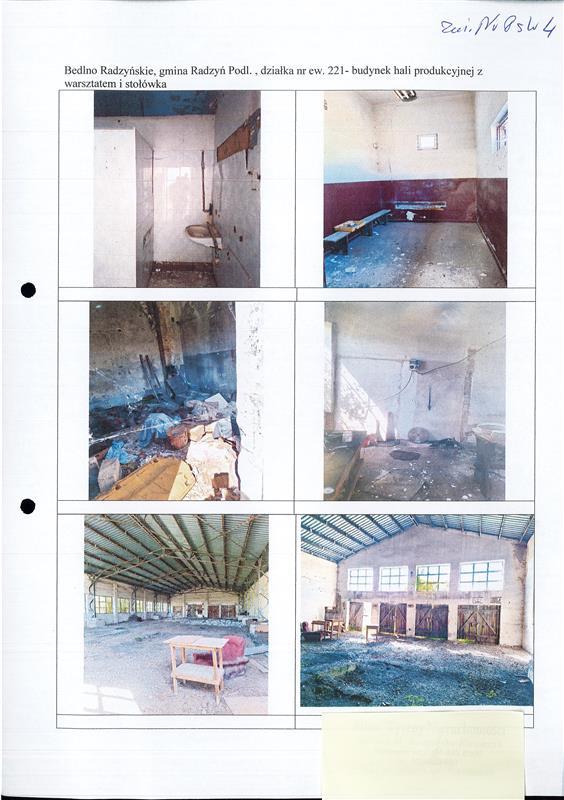 Komornik Sądowy przy Sądzie Rejonowym w Radzyniu Podlaskim Andrzej Sienkiewicz, podaje do publicznej wiadomości, że w dniu 25 lutego 2026r. o godzinie 10:00 rozpocznie się druga licytacja elektroniczna licytacja nieruchomości w postaci prawa wieczystego użytkowania działki gruntowej nr 221 o pow. 4,00 ha należącego do Skarbu Państwa będącej w użytkowaniu wieczystym DREWNOFAL Sp. z o.o. położonej w msc. Bedlno Radzyńskie gm. Radzyń Podlaski wraz z odrębną własnością budynków na niej posadowionych: budynek biurowy, budynek byłej suszarni z przybudówką, dwa budynki hal produkcyjnych. Nieruchomość posiada założoną w Sądzie Rejonowym Wydział Ksiąg Wieczystych w Radzyniu Podlaskim księgę wieczystą o numerze NKW LU1R/00033800/4. Zgodnie z miejscowym planem zagospodarowania przestrzennego nieruchomość położona jest na obszarze oznaczonym jako tereny obiektów produkcyjnych, usług, składów i magazynów (E8P). Licytacja zakończy się w dniu 04 marca 2026r. o godzinie 10:00. Nieruchomość oszacowana jest na kwotę 571 000,00 zł. Cena wywołania wynosi dwie trzecie wartości szacunkowej tj. kwotę 380 666,67 zł. Licytant przystępujący do przetargu powinien złożyć rękojmię w wysokości 1/10 sumy oszacowania to jest 57 100,00 zł. Nieruchomość można oglądać w ciągu dwóch tygodni przed licytacją w godzinach od 10.00 do 18.00. Sprzedaż w drodze licytacji elektronicznej jest dokonywana za pośrednictwem systemu teleinformatycznego dostępnego pod adresem: https://elicytacje.komornik.pl/. Przystąpienie do przetargu wymaga zgłoszenia przystąpienia w systemie teleinformatycznym obsługującym licytacje elektroniczne dostępnym pod adresem: https://elicytacje.komornik.pl na 2 dni robocze przed rozpoczęciem przetargu. Warunkiem udziału w przetargu jest utworzenie indywidualnego konta w systemie teleinformatycznym. Rękojmię należy złożyć na rachunek bankowy komornika numer: BNP Paribas Bank Polska S.A. 16 2030 0045 1110 0000 0339 3750 najpóźniej na 2 dni robocze przed rozpoczęciem przetargu. Za datę złożenia rękojmi przyjmuje się dzień uznania rachunku bankowego komornika. Przepisu art. 964 kpc nie stosuje się. Wraz z rękojmią licytant zobowiązany jest do podania w systemie teleinformatycznym danych niezbędnych do wydania postanowienia o przybiciu: numeru pesel, numeru dokumentu stwierdzającego tożsamość i oświadczenia, czy pozostaje w związku małżeńskim, a jeżeli tak, czy nieruchomość zamierza nabyć do majątku wspólnego czy osobistego, oraz do wskazania, czy licytuje we własnym imieniu czy jako pełnomocnik innej osoby, a także innych danych, jeżeli potrzeba ich podania wynika z przepisów odrębnych ustaw. W razie potrzeby komornik niezwłocznie wzywa licytanta, pod rygorem niedopuszczenia do udziału w przetargu, za pośrednictwem systemu teleinformatycznego do uzupełnienia danych, a jeżeli udział w przetargu wymaga zezwolenia organu władzy publicznej lub wykazania umocowania do występowania w imieniu innej osoby - do przedłożenia utrwalonych w postaci elektronicznej kopii wymaganych dokumentów w terminie 3 dni, nie później niż dzień przed terminem licytacji.