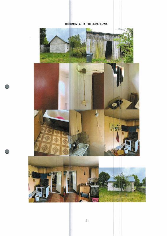 Budynek mieszkalny jednorodzinny, jednokondygnacyjny, niepodpiwniczony, murowany z pustaka, kryty dachem dwuspadowym o konstrukcji drewnianej, pokrycie blacha. Budynek nieotynkowany i nieocieplony. Budynek użytkowany jako mieszkalny został przekształcony z budynku gospodarczego. Ogólny stan techniczny materiałów konstrukcyjnych i wykończeniowych na poziomie słabym ze względu na wiek budynku. Zużycie elementów konstrukcyjnych typowe dla czasookresu użytkowania. Brak wydzielonych pomieszczeń pomocniczych w budynku takich jak kuchnia czy łazienka. Stopień zużycia technicznego i funkcjonalnego budynku przyjęto w wysokości 60%.