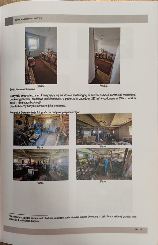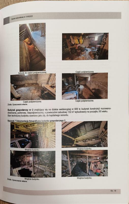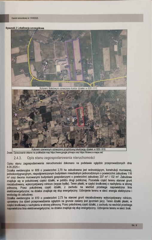 Nieruchomość stanowi zabudowaną działkę ewidencyjną nr 609 o powierzchni 2,70 ha. położona w obrębie geodezyjnym Wysin, gmina Liniewo, powiat kościerski. Działka nr 609 w części południowej zabudowana jest jednokondygnacyjnym, niepodpiwniczonym budynkiem mieszkalnym jednorodzinnym o powierzchni zabudowy 116 m2 oraz dwoma budynkami gospodarczymi o powierzchni zabudowy 237 m2 i 132 m2. W pozostałej części działka nr 609 wykorzystywana jest rolniczo. Na podstawie informacji planistycznych zawartych w serwisie internetowym https://liniewo.e-mapa.net/ ustalono, iż teren, na którym znajduje się działka nr 609 nie jest objęty miejscowym planem zagospodarowania przestrzennego. Zgodnie ze studium uwarunkowań i kierunków zagospodarowania przestrzennego gminy Liniewo, teren przedmiotowej nieruchomości oznaczony został jako tereny rolne.