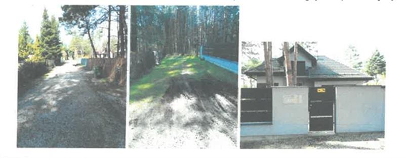 i długościach podstaw odpowiednio 29 m i 32 m oraz powierzchni 992 m2 . Działka zabudowana- dwukondygnacyjnym budynkiem mieszkalnym o konstrukcji murowanej. Powierzchnia zabudowy około 142 m2 . Rok budowy – 2015-2017 r. Dojścia i dojazdy z kostki granitowej, wnętrze działki z nasadzeniami roślinami wiecznozielonymi, budynek wkomponowany w teren o charakterze lasu sosnowego.