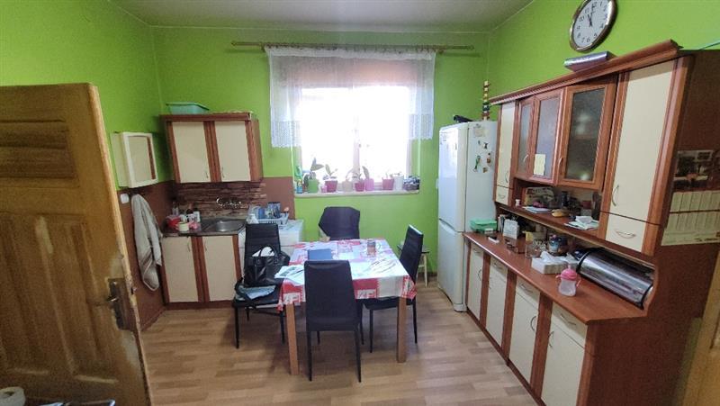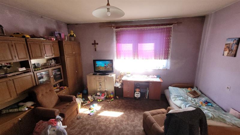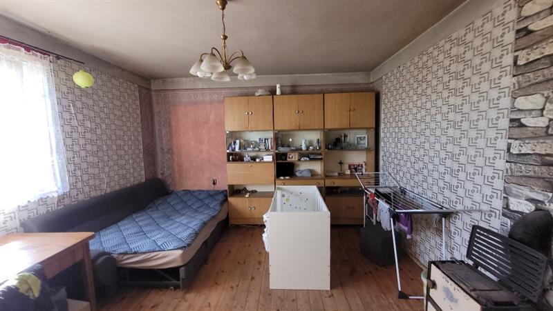 Budynek mieszkalny: dwukondygnacyjny - parter i poddasze gospodarcze, częściowo podpiwniczony, w zabudowie wolnostojącej, wybudowany w roku 1962 w technologii tradycyjnej murowanej o powierzchni użytkowej 85,04 m2. Budynek składa się z następujących pomieszczeń: wiatrołap, korytarz, 3 pokoje, spiżarnia, kuchnia. Instalacje techniczne w budynku: elektryczna, kanalizacyjna - zbiornik bezodpływowy na ścieki, wodociągowa, ogrzewanie - piece kaflowe na opał stały + koza, c.w. brak, brak pomieszczenia wc i łazienki.