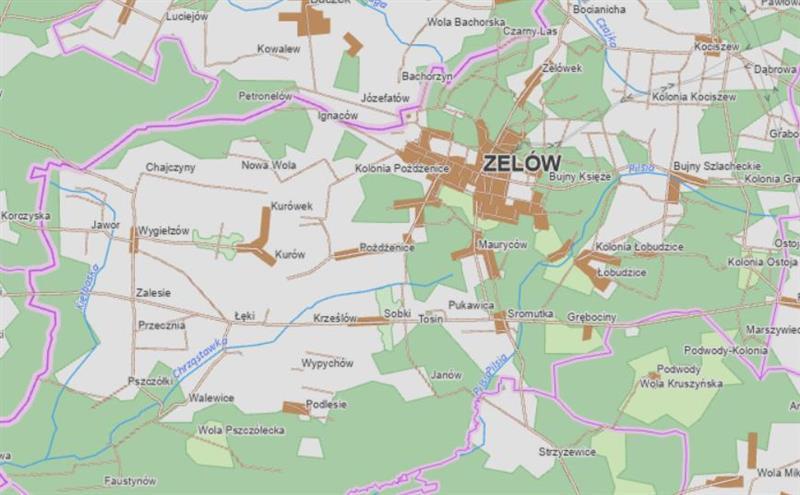 - nieruchomości położonej przy 1,WYGIEŁZÓW, 97-425 Zelów, dla której V Wydział Ksiąg Wieczystych Sądu Rejonowego w Bełchatowie (adres: ul. Pabianicka 32, Bełchatów, 97-400 Bełchatów) prowadzi księgę wieczystą o numerze PT1B/00082624/0.