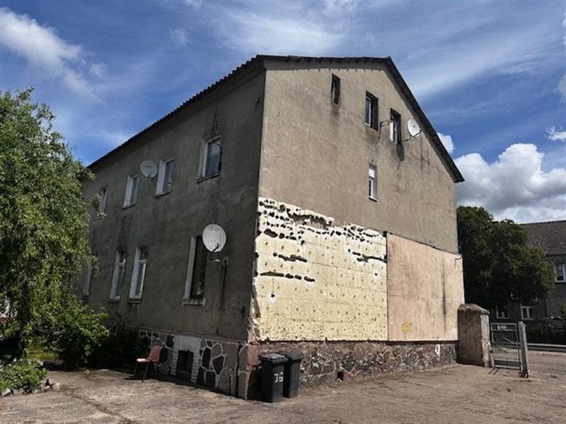 Przedmiotem licytacji jest udział 125/500 niewydzielonej części w nieruchomości gruntowej o pow. 0,3575 ha zabudowanej budynkiem mieszkalnym pięciorodzinnym w zabudowie wolnostojącej o pow. zabudowy 229 m2 ( umowna pow. budynku wynosi 389,30 m2 ) oraz czterema budynkiem gospodarczymi o pow. zabudowy 114 m2, 342 m2, 575 m2, 91 m2. Lokal mieszkalny nr 3 użytkowany przez dłużniczkę składa się z dwóch pokoi, kuchni, łazienki i przedpokoju.