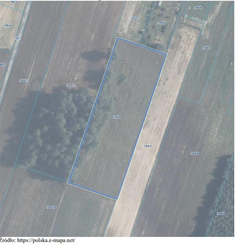 niezabudowanej działki gruntu nr 103/8, o pow. 0,5968ha. W ewidencji gruntów Starostwa Powiatowego w Łęcznej, działka oznaczona jest jako grunty zadrzewione i zakrzaczone klasy LZ w części o pow. 0,0005 ha oraz grunty orne klasy RIVb w części o pow. 0,0103ha, klasy RV w części o pow. 0,0730ha oraz klasy RVI w części o pow. 0,5130ha. Zgodnie z mpzp działka stanowi tereny upraw polowych (RP). Działka nie posiada bezpośredniego dostępu do drogi publicznej, dojazd odbywa się przez działkę sąsiednią nr 103/10, zgodnie z wpisem w dziale I SP księgi wieczystej. Działka ma kształt wydłużonego prostokąta, porośnięta jest roślinnością trawiastą i samosiejkami. Jest nieuzbrojona. W bliskiej odległości zasięg sieci: wod.,en. i tel. Dla nieruchomości prowadzona jest księga wieczysta nr LU1S/00012656/7 w Sądzie Rejonowym Lublin-Wschód w Lublinie z siedzibą w Świdniku V Wydział Ksiąg Wieczystych.
