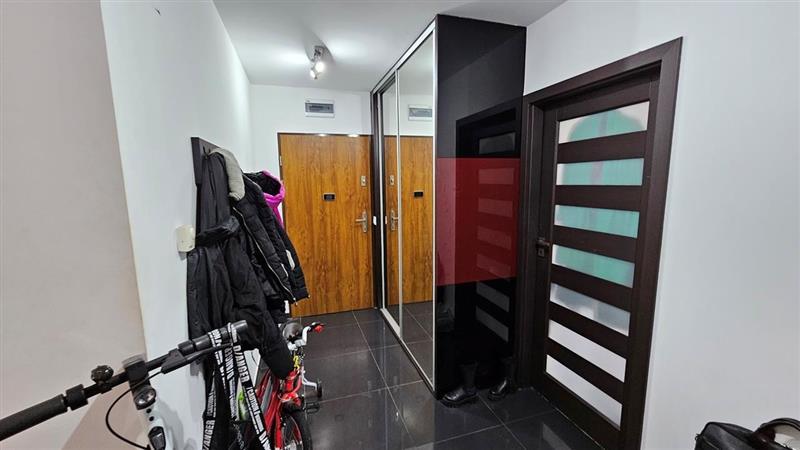 Lokal jednopoziomowy z przyległym balkonem, usytuowany na drugiej kondygnacji budynku, tj. na pierwszym piętrze, z dwustronną, północną i południową ekspozycją okien. Lokal składa się z trzech pokoi, w tym jednego z aneksem kuchennym, łazienki i przedpokoju. Układ funkcjonalny pomieszczeń lokalu i ich kształt korzystny - rozkładowy i regularny. Wyposażenie instalacyjne lokalu: instalacja elektryczna, wodno-kanalizacyjna, CO i CWU zasilane z miejskiej sieci ciepłowniczej, instalacja teletechniczna, w tym wideodomofonowa.
