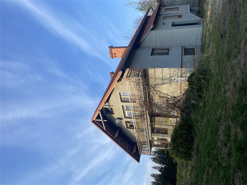 W budynku mieszkalnym na parterze: salon z kuchnią, łazienka, sypialnia, korytarz, na piętrze: trzy pokoje w tym dwa z garderobą, WC, łazienka. W piwnicy: pralnia, dwa pomieszczenia gospodarcze, WC, spiżarnia pod schodami.Ogrzewanie domu i wody użytkowej piecem na paliwo stałe. W budynku wykonano instalację elektroenergetyczną, wodno–kanalizacyjną i centralnego ogrzewania. Nieruchomość objęta jest księgą wieczystą KW Nr RZ1S/00015372/7, prowadzoną przez Sąd Rejonowy w Strzyżowie IV Wydział Ksiąg Wieczystych.