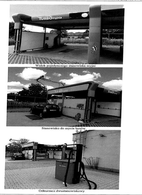 b) myjni samochodowej bezdotykowej z 4 zadaszonymi stanowiskami do mycia samochodów osobowych, jednym niezadaszonym do mycia busów oraz z częścią techniczną, o powierzchni użytkowej 201,60 m kw i kubaturze 513,20 m sześciennych sześciennego wraz z dwustanowiskowym odkurzaczem