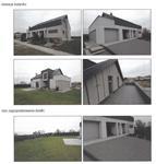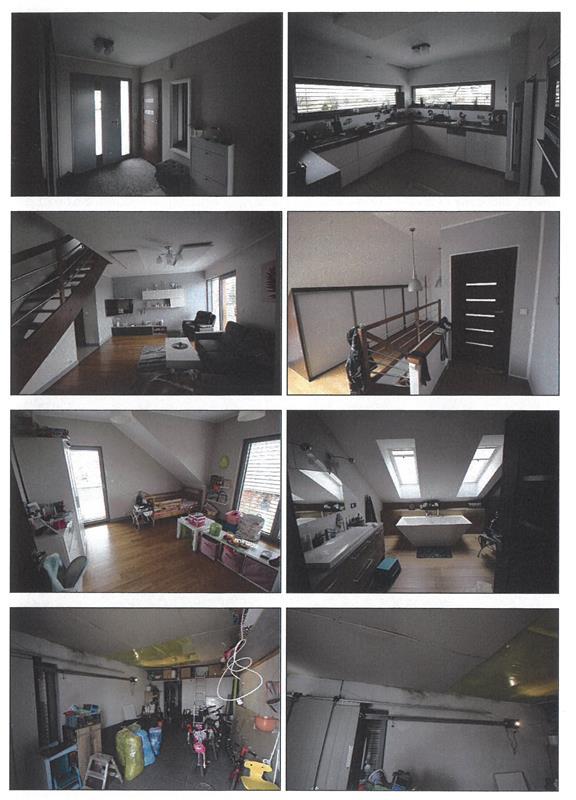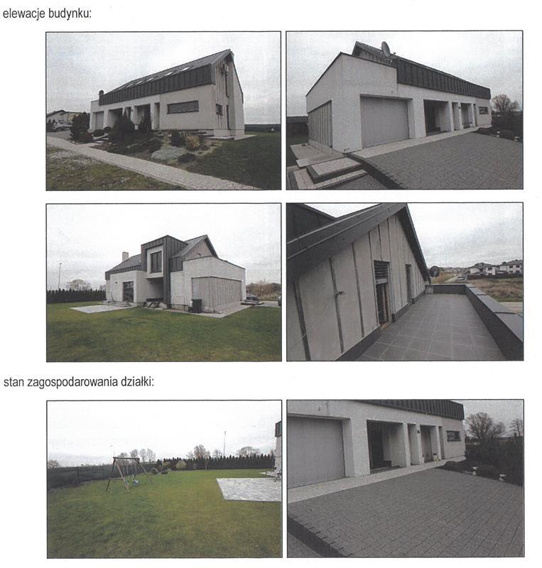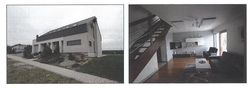 Usytuowany na nieruchomości budynek mieszkalny to obiekt parterowy z poddaszem użytkowym i dwuspadowym dachem, niepodpiwniczony, zakończony w 2015 r. w konstrukcji tradycyjnej murowanej. Budynek wykończony przy wykorzystaniu wysokiej jakości materiałów. Wejście główne do budynku od strony południowej, z korytarza wejściowego dostęp do pomieszczenia technicznego, łazienki z WC oraz otwartej przestrzeni salonu połączonego z kuchnią i jadalnią. W salonie wyjście do ogrodu na tyłach budynku oraz schody ażurowe prowadzące na poddasze.