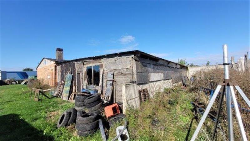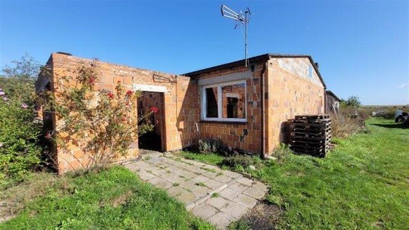 Budynek gospodarczy użytkowany jako mieszkalny, parterowy wybudowany w technologii tradycyjnej w zabudowie wolnostojącej, niepodpiwniczony. Fundamenty betonowe, ściany zewnętrzne z pustaka ceramicznego nie są ocieplone i nie są otynkowane, dach o konstrukcji drewnianej, pokryty papą, rury i rynny z blachy ocynk, stolarka okienna PCV, drzwiowa – wewnętrzna płycinowa, zewnętrzna stalowa. Podłogi – w pokojach i na korytarzu panele a w kuchni i łazience płytki, ściany malowane farbami oraz w kuchni i w łazience obłożone płytkami, sufity malowane farbami, grzejniki stalowe. Instalacje techniczne w budynku: elektryczna, wodociągowa, c. o . i c.w. z pieca na opłat stały Stan techniczny budynku średni o wykończeniu standardowym.