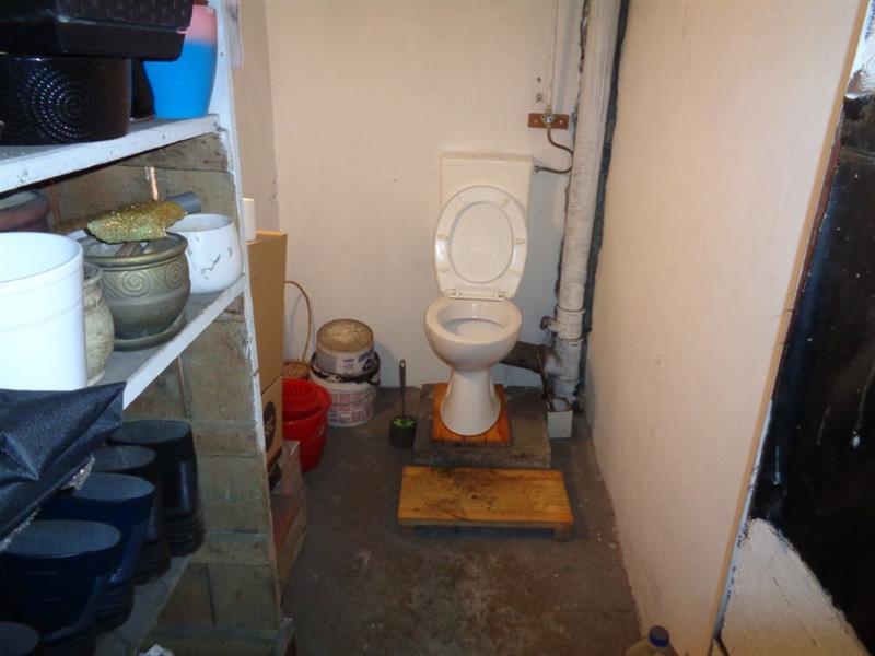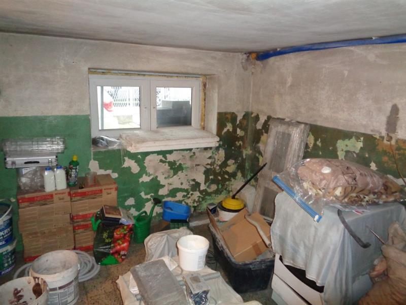 Budynek gospodarczy wykonany w technologii tradycyjnej, w zabudowie wolnostojącej. Budynek posiada jedną kondygnację nadziemną (parter), brak podpiwniczenia. Rozwiązania konstrukcyjno – materiałowe i wykończeniowe: fundamenty: z kamienia. Ściany: murowane z cegły i pustaka na zaprawie cementowo - wapiennej. Strop: betonowy monolityczny. Dach: stropodach betonowy monolityczny, pokrycie dachu stanowi papa na lepiku, rynny brak. Elewacja: tynk nakrapiany. Stolarka: okna z drewna, drzwi wejściowe stalowo - drewniane. Instalacje: brak. Podstawowe dane techniczne: powierzchnia netto [m2]: 12,68; powierzchnia użytkowa [m2]: 6,34.