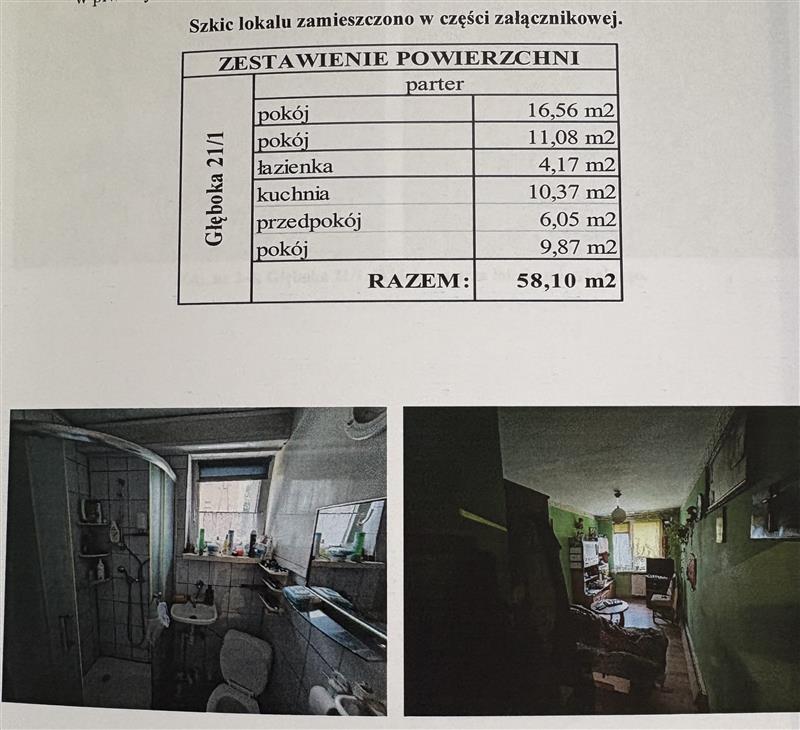 lokal mieszkalny trzy pokoje+kuchnia, łazienka z WC, o powierzchni 58,10 m2