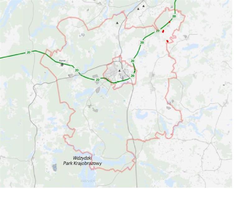 Działka nr 229 o pow. 300 m2 zlokalizowana przy ul. Kasztanowej, w niedalekim sąsiedztwie skrzyżowania z drogą krajową nr 20 oraz w niedalekim sąsiedztwie terenu nieczynnego cmentarza.