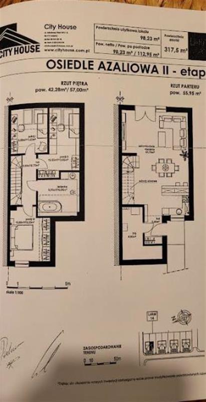 Lokal składa się z dwóch kondygnacji naziemnych - parteru i poddasza. Na parterze znajduje się wiatrołap, pomieszczenie gospodarcze oraz pokój dzienny z aneksem kuchennym i jadalnią, natomiast na poddaszu znajdują się dwa pokoje, garderoba, hol i łazienka. Powierzchnia użytkowa lokalu wynosi 98,23m2. Lokal położony jest w dwukondygnacyjnym murowanym budynku mieszkalnym jednorodzinnym dwulokalowym, posadowionym na działce nr 420/228 o powierzchni 623m2. Oprócz budynku mieszkalnego na działce posadowiony jest jeszcze garaż przeznaczony do wyłącznego korzystania właściciela lokalu nr 1. Przed budynkiem dostępne są miejsca parkingowe dla mieszkańców. Przedmiotowy lokal posiada bezpośrednie wejście z poziomu parteru znajdujące się po prawej stronie budynku.