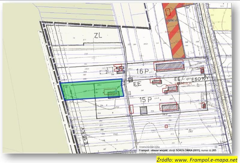 nieruchomość gruntowa stanowiąca działkę gruntu nr 205, obręb 0011 Sokołówka, o powierzchni 0,4543ha, częściowo zabudowana zabudową komercyjną, tj. budynkiem hali blaszanej o powierzchni zabudowy 267m2 wraz z wiatą o powierzchni zabudowy ok. 210 m2 oraz fundamentami w układzie prostokątnym o powierzchni zabudowy ok. 415 m2, położona w obrębie ewidencyjnym wsi Sokołówka, gmina Frampol.