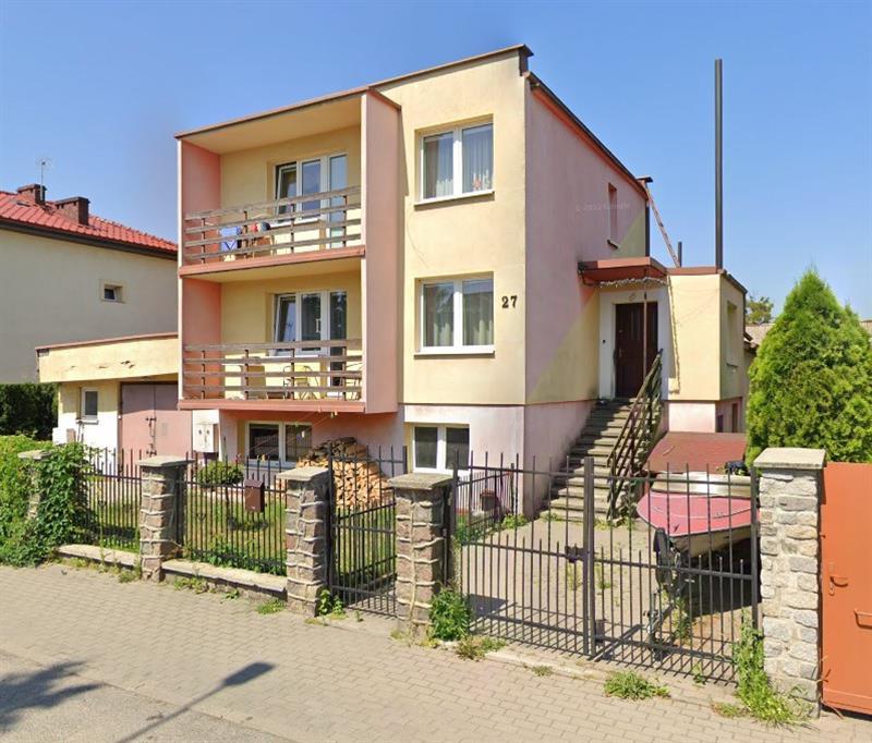 Nieruchomość- działka ewidencyjna nr 310 o powierzchni 645m2, położona jest przy ulicy Dębowej 27. Działka zabudowana jest budynkiem mieszkalnym i budynkiem warsztatowym w zabudowie bliźniaczej. Budynek mieszkalny to obiekt podpiwniczony, piętrowy, murowany z płakim stropodachem o powierzchni zabudowy 78 m2 i powierzchni użytkowej ok. 115 m2, zawiera w piwnicy pomieszczenia gospodarcze, na parterze i piętrze pokój dzienny, kuchnię, łazienkę przedpokój i wiatrołap, na pietrze 3 pokoje, łazienkę i przedpokój, wyposażony w instalacje: elektryczną, wodociągową i kanalizacyjną, gazową przewodową, grzewczą i cw z kotła zlokalizowanego w budynku warsztatowym. Stan techniczny budynku z uwagi na zawilgocenie i zagrzybienie stropodachu i ścian piętra zadowalający.