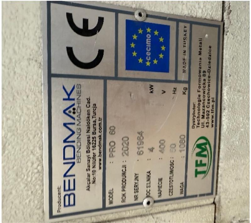 | 1 | BENDMAK BENDING MACHINES TURCJA PRO-60 rok 2020 moc 4kW 400V 50Hz 207h pracy Urządzenie do wyginania rur, profili i prętów | 1 | 37 146,00 zł 30200,00 zł netto + 23% VAT | 18 573,00 zł* |