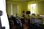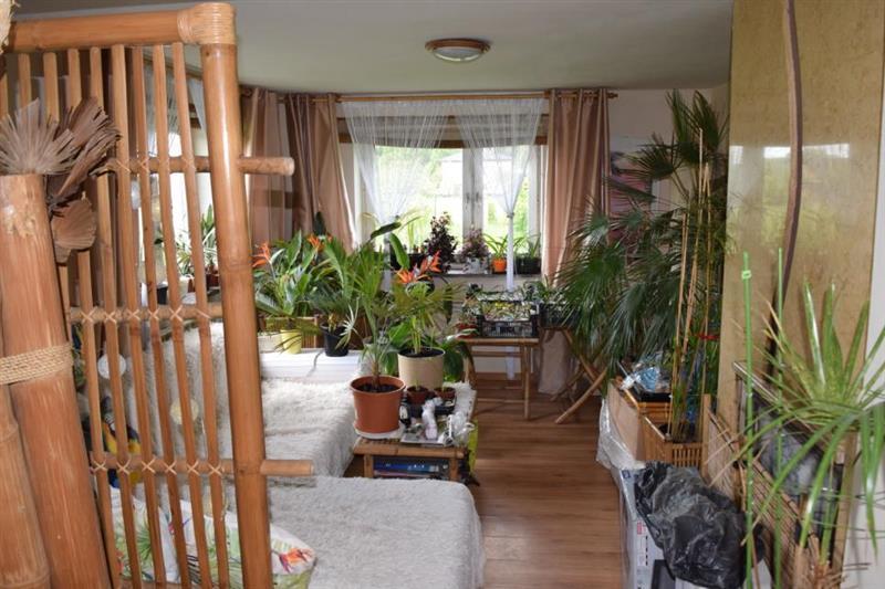 Teren działki tylko w zachodniej części jest ogrodzony siatką. W sąsiedztwie budynku rośnie kilka owocowych drzew oraz ozdobne krzewy, a przy granicy działki tuje.
