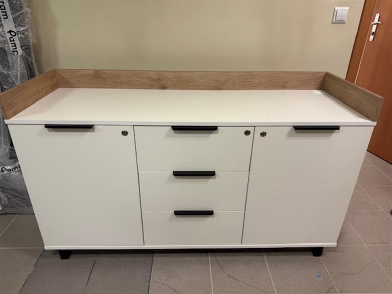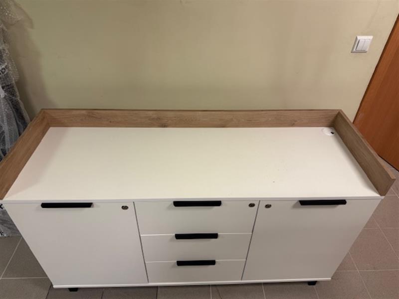 | 47 | Komoda z szufladami wykonana z płyty meblowej koloru białego, uchwyty czarne, zamykana na klucz, wymiary: 900x1500x500mm | 1 | 400,00 zł 325,20 zł netto + 23% VAT | 300,00 zł* |