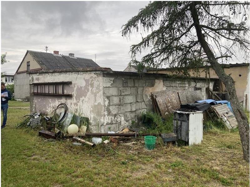 Nieruchomość gruntowa zabudowana o powierzchni 862 m2 ma kształt rombu, teren płaski, sklasyfikowana jest w ewidencji gruntów jako B – tereny mieszkaniowe. Teren ogrodzony (odgrodzenie o wysokim stopniu zużycia), niezagospodarowany. Na działce, od strony ul. Topolowej, usytuowany jest słup energetyczny. Do nieruchomości doprowadzone są sieci: wodociągowa i kanalizacyjna (niezinwentaryzowane na mapie), energia doprowadzona ze słupa elektroenergetycznego. W drodze dojazdowej przyłącze telekomunikacyjne i równolegle projektowane jest nowe przyłącze telekomunikacyjne. Nieruchomość zabudowana jest: budynkiem mieszkalnym (nr ew. 392) z ok. 1975 r., wolnostojącym, murowanym, parterowym ze strychem niemieszkalnym, o powierzchni użytkowej Pu 79,6 m2 plus kotłownia o powierzchni 3,1 m2; budynkiem mieszkalnym (nr ew. 393) z lat 80/90 tych XX w., murowanym, parterowym o powierzchni użytkowej Pu ok. 43,3 m2 plus kotłownia 1,5 m2., który przylega do budynku gospodarczego (nr ew. 391), murowanego, parterowego o Pz 43 m2 i Pu ok. 36 m2. Bezpośredni dojazd do nieruchomości prowadzi drogą o nawierzchni ulepszonej. Brak jakiejkolwiek dokumentacji dotyczącej budynków na nieruchomości. Budynek mieszkalny (nr ew. 393) został przekwalifikowany z gospodarczego na mieszkalny, aktualnie znajduje się w bardzo złym stanie techniczno-użytkowym. Nieruchomość posiada dostęp do drogi publicznej o randze drogi gminnej – działki drogowej o numerze ew. 153/13 – (TO1T/00033496/3), we własności gminy Zławieś Wielka.