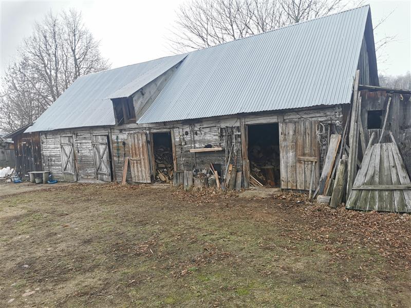 Działka nr 26/1 o powierzchni 2,6911 ha zabudowana jest drewnianym budynkiem mieszkalnym o powierzchni zabudowy 67m2, murowaną stodołą o powierzchni zabudowy 203m2, drewnianą oborą o powierzchni zabudowy 65m2 oraz drewnianą oborą o powierzchni zabudowy 72m2. Na działce znajduje się również drewniany garaż o powierzchni zabudowy 20m2, drewniany budynek dawnej zlewni mleka o powierzchni zabudowy 13m2, drewniany kurnik o powierzchni zabudowy 15m2 oraz szopa drewniana z zawalonym dachem, które nie są ujawnione w ewidencji budynków.