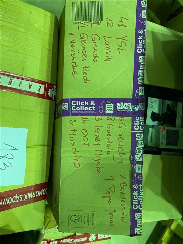 | 7 | Karton kosmetyków zawierający 57 sztuk perfum, dezodorantów i wód toaletowych | 14 250,00 zł | 10 687,50 zł | 535,00 zł |