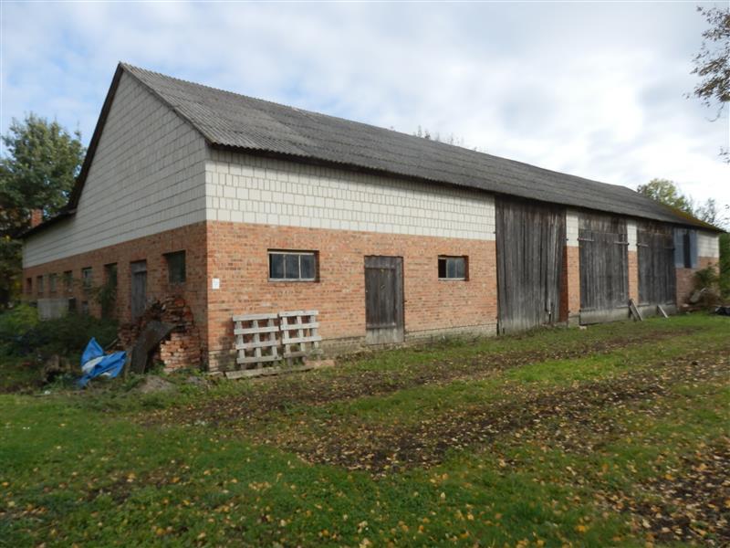 Stan zagospodarowania: działka o regularnym kształcie prostokąta nieogrodzona, zabudowanym budynkiem mieszkalnym i budynkiem gospodarczym, z napowietrzną linią elektroenergetyczną 15 kV przebiegającą wzdłuż zachodniej granicy.