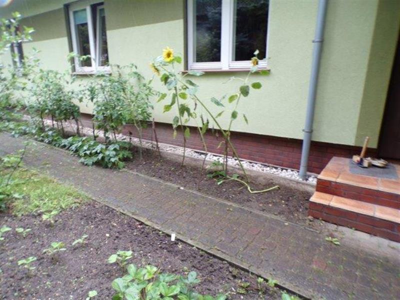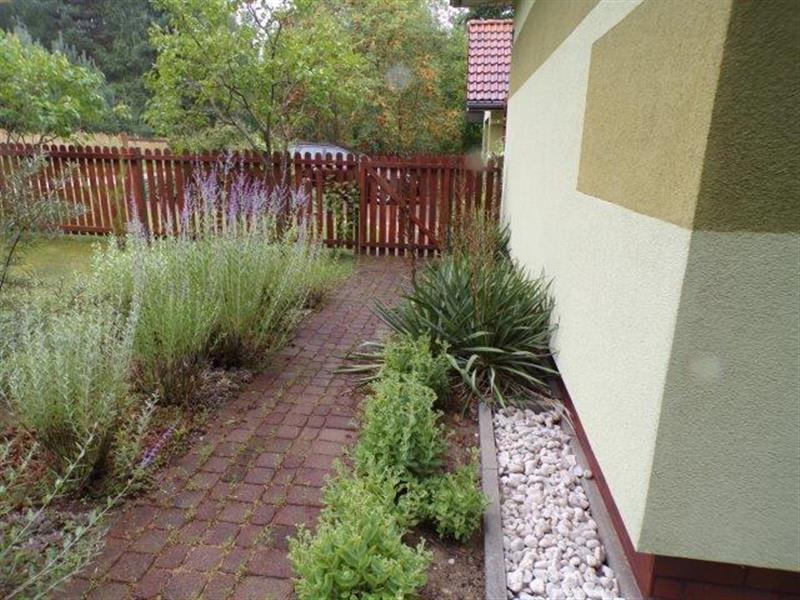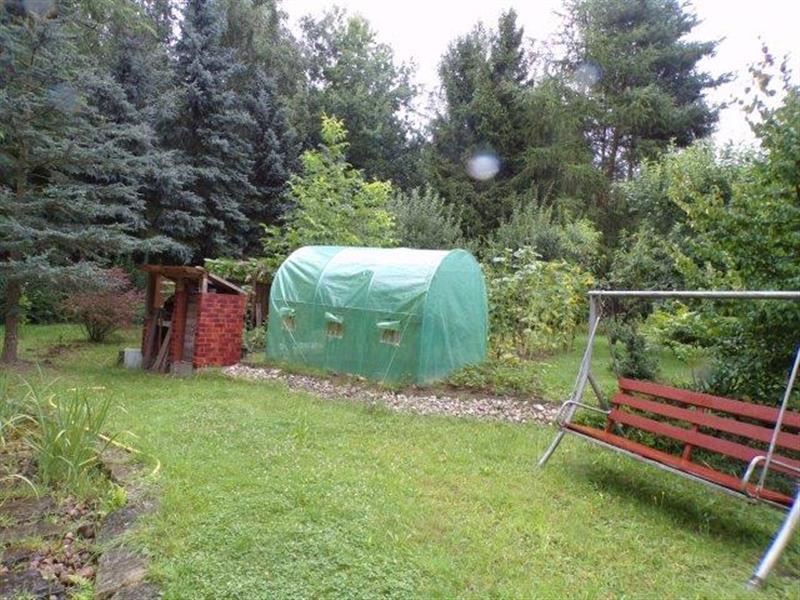 Działka o numerze geodezyjnym 283/2 ma regularny kształt zbliżony do prostokąta i powierzchnię 0,1636ha. Została zagospodarowana w sposób uporządkowany i funkcjonalny. Teren ogrodzony płotem ze sztachet drewnianych zamontowanych na stalowych słupkach oraz siatką budowlaną,. Podjazd i przejścia utwardzone kostką brukową. Działka porośnięta trawą, urządzone oczko wodne, porośnięta drzewami i krzewami owocowymi oraz ozdobnymi, wygospodarowane miejsce na przydomowy ogród warzywny z tunelami foliowymi. Znajduje się na niej wiata drewniana na drewno. Wokół budynku mieszkalnego opaska z ozdobnych kamieni otoczaków.