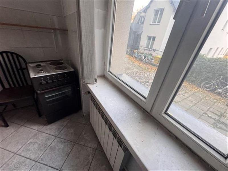 Kuchnia i pokój z oknami na wewnętrzne podwórze. Kondygnacja : wysoki parter, pomieszczenia : przedpokój, pokój, kuchnia, łazienka oraz przynależność w postaci pomieszczenia w piwnicy.