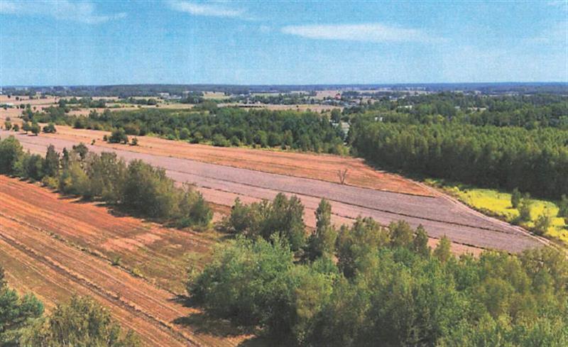 Udział wynoszący 1/2 część nieruchomości o powierzchni 5 395,00 m2. Nieruchomość składająca się z działki o nr 71 o powierzchni 0,5395 ha , stanowi użytek R IVb i V o nieregularnym kształcie zbliżonym do wydłużonego rąbu, o szerokości ok 9 m gdzie dwa najkrótsze boki przylegają do drogi gminnej. Teren działki charakteryzuje się łagodnie pofalowaną rzeźbą , która nie wpływa negatywnie na prowadzenie działalności rolniczej ani na efektywność upraw. nieruchomość jest niezabudowana. Przez nieruchomość w północowschodniej części przebiega napowietrzna linia elektroenergetyczna wysokiego napięcia i podziemna cześć gazociągu wysokiego ciśnienia oraz w obrębie środkowej części działki podziemna lina elektroenergetyczna wysokiego napięcia.